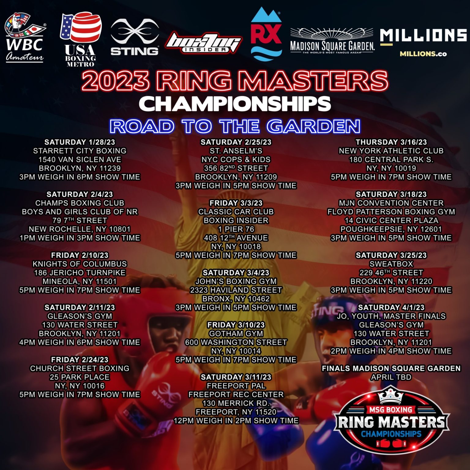2024 Ring Masters Championships Road To The Garden. Road to the garden 🥊 registration is open now! Following 16 exciting events comprising usa boxing metro’s “road to the garden” tournament, the new york metro area’s best amateur.